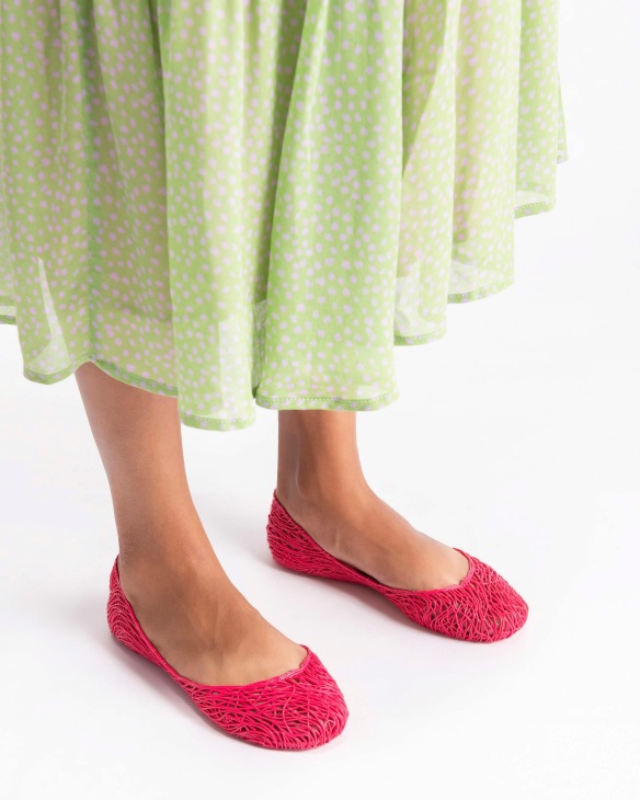 It's time to recover our essence and give our senses a voice. The much-loved collab Melissa + Campana Brothers is back with a novel and striking texture. The Campana Flow has a new pattern inspired by the swirls in the wind, with winding and curling lines. Its fine, airy and delicate texture brings new models to life in colorful, metallic and glitter options to match diverse styles and personalities. A highlight is this shoe's super comfortable, removable insole.