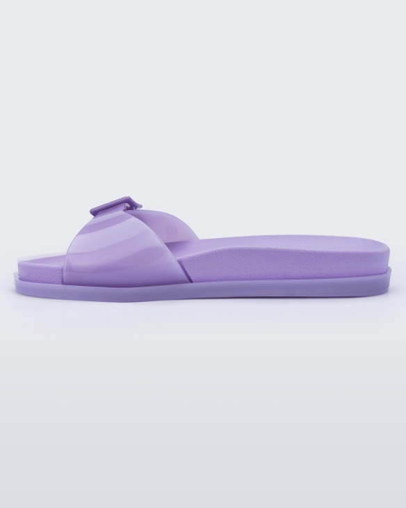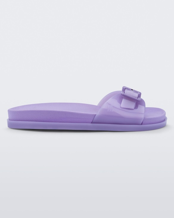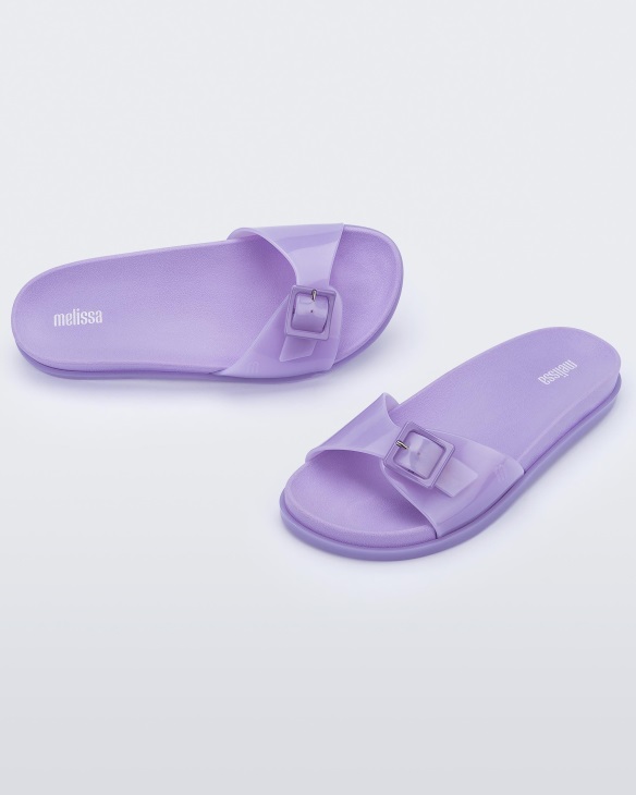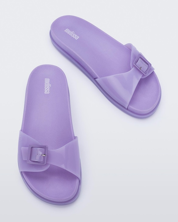 Comfy and fashionable, Melissa Wide Slide is an inspired classical look from the 90s. The buckles slide has passed by countless ups and downs in the fashion world, and is one of the most famous styles for the European summer season, thanks to the versatility. The color palette has colorful shades , glitter and turtle finish, matching with every style.
