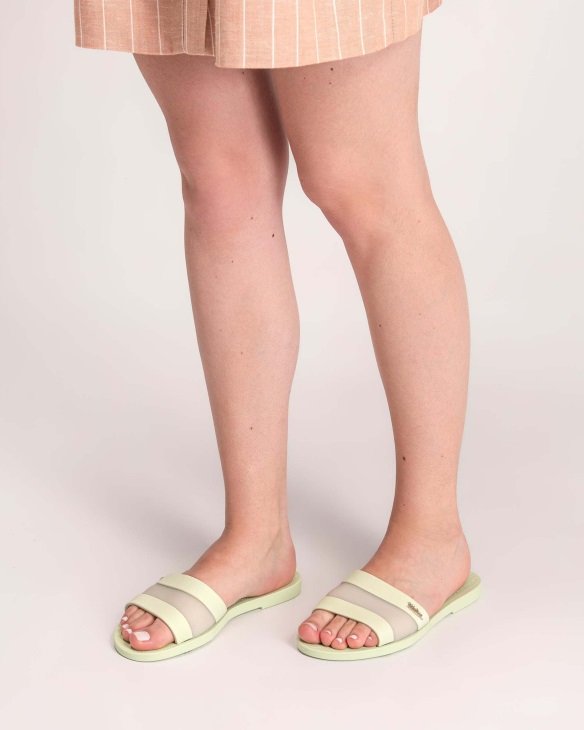 To celebrate the hottest, most lively and colourful season of the year, we have created a new family of super cool Melissas to match the sunny season. The Melissa Sun Hollywood slide is versatile and perfect for adorning all of the light and casual outfits for any moment of your summer schedule. A new feature is the expanded material of the sole, which has a special texture like a beach mat, and the Melflex straps. There is a broad colour palette ranging from neutral and timeless colours to vibrant versions with lots of transparency and Melissa's DNA.