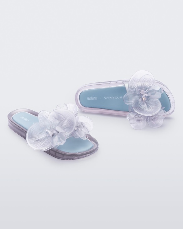 An unprecedented collab to celebrate the extraordinary with unusual cuts, shapes and reconstructions. Melissa + Y/Project carries the whole identity of the latter brand's creative director, Glenn Martens, combining conceptual detailing with playful proportions and a witty take on historical references. The result is collections with drastically reinvented silhouettes and modified constructions. The French brand, which is highly regarded by top artists around the world, gives life to two new versions of the Melissa Beach Slide where two models have a washed paint effect and two others have 3DB prints of tapestries, bringing a royal mood to the spotlight.